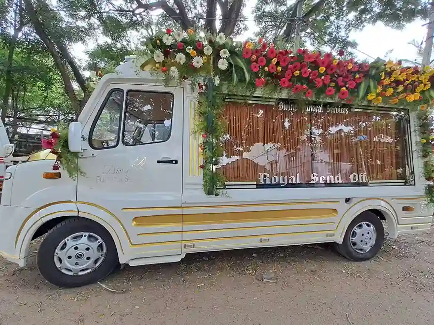 For a respectful farewell, we offer specially designed hearse vehicles for dignified transportation of the deceased.